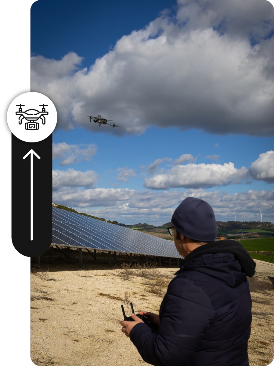 Por medio de drones captamos escenas que marcan la diferencia entre una inspección técnica eficiente o una avería que no ha sido detectada a tiempo en tus paneles solares.